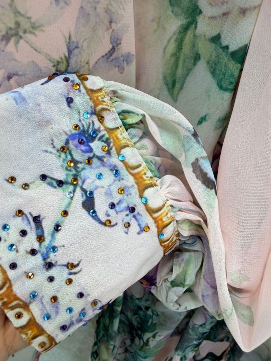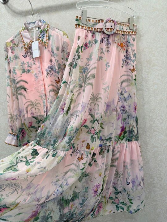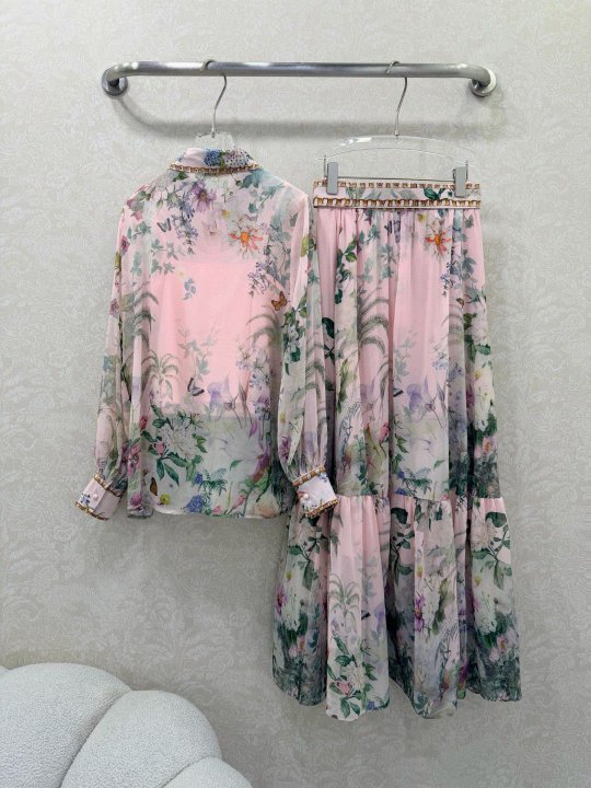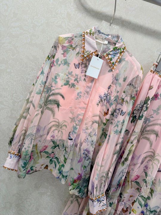 • Zimmerman26 early spring new printed hot drilling suit lapel long-sleeved shirt and half-skirt combination dress neckline cuffs hot drilling lantern sleeves design front placket single-row paper bag buckle skirt pleated cuffs tighten into bubble sleeves delivery customized waist waist skirt body oversized display materials are full of sincerity and super invincible fairy model heavy work details, perfect replica counter model full of high-end feeling, super upright and casual style, even elegant style