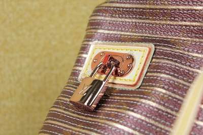 padlock, an interior flat pocket and bottom studs for protection. The gorgeous bag measures 11.4" x 10.2" x 7.5" and comes in three