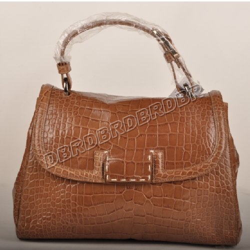 Fendi Silvana SatchelCaramel brown crocodile embossed leather