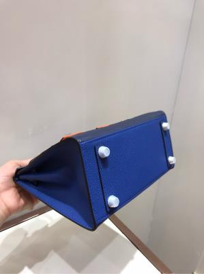 A tribute to Parisian nights, the Faubourg Hermès bag in Night features the same combination of Matte Alligator and Madame calfskin as the Day edition. The roof is Blue Marine, and the walls are Deep Blue. Its Craie Epsom windows glow against the stonework detailed in Blue Obscur beneath the brand's iconic Orange H Swift awnings.