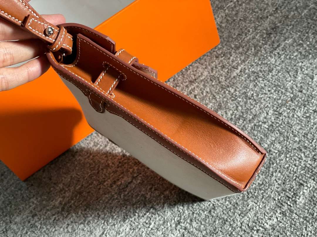• The ultra-trendy Kelly Depeches has a new creation! Made with French Barenia leather cleverly combined with canvas, it presents a completely different vibe compared to the all-leather version, exuding a fresh and unique charm. It can be carried by hand or worn over the shoulder. Paired with the Kelly shoulder strap, this bag is perfect for both men and women!