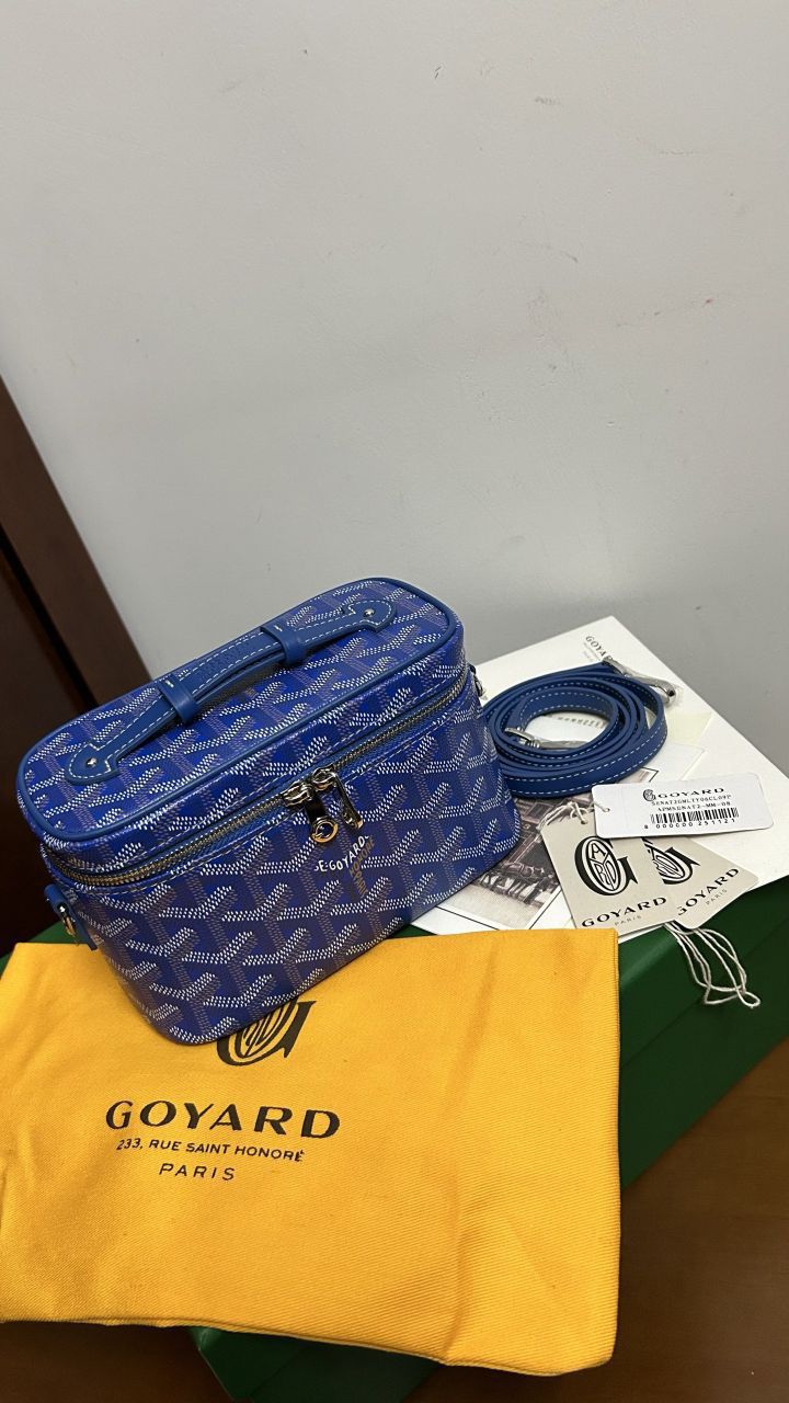 The GOYARD MUSE Mini Cosmetic Bag continues the design elements of the MUSE Small Cosmetic Bag and is presented in a mini version. It is elegant and practical, and safely stores daily necessities. The MUSE mini bag is equipped with removable leather shoulder straps that can be carried, shoulder-backed or cross-slung.