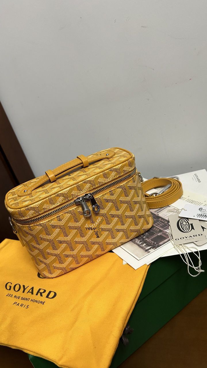 • The GOYARD MUSE Mini Cosmetic Bag continues the design elements of the MUSE Small Cosmetic Bag and is presented in a mini version. It is elegant and practical, and safely stores daily necessities. The MUSE mini bag is equipped with removable leather shoulder straps that can be carried, shoulder-backed or cross-slung.