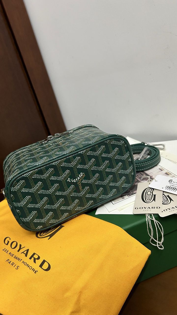 • The GOYARD MUSE Mini Cosmetic Bag continues the design elements of the MUSE Small Cosmetic Bag and is presented in a mini version. It is elegant and practical, and safely stores daily necessities. The MUSE mini bag is equipped with removable leather shoulder straps that can be carried, shoulder-backed or cross-slung.
